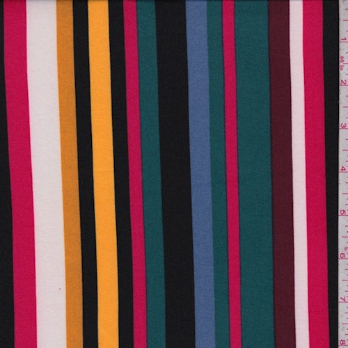 Spruce/Black/Wine Multi Stripe Double Brushed Jersey Knit Fabric