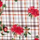 White/Salmon Plaid Floral Double Brushed Jersey Knit Fabric
