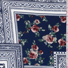 White/Sapphire Floral Tile Double Brushed Jersey Knit Fabric