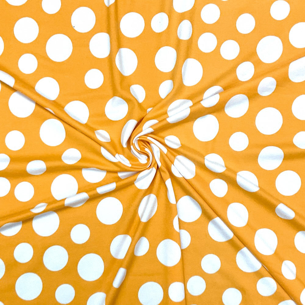 -Yellow-White Poly Spandex Stretch Dot Print Double Brush Jersey Knit Fabric