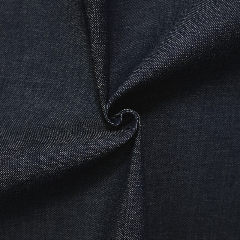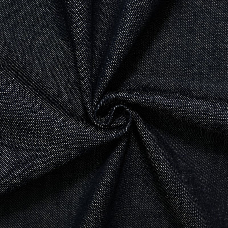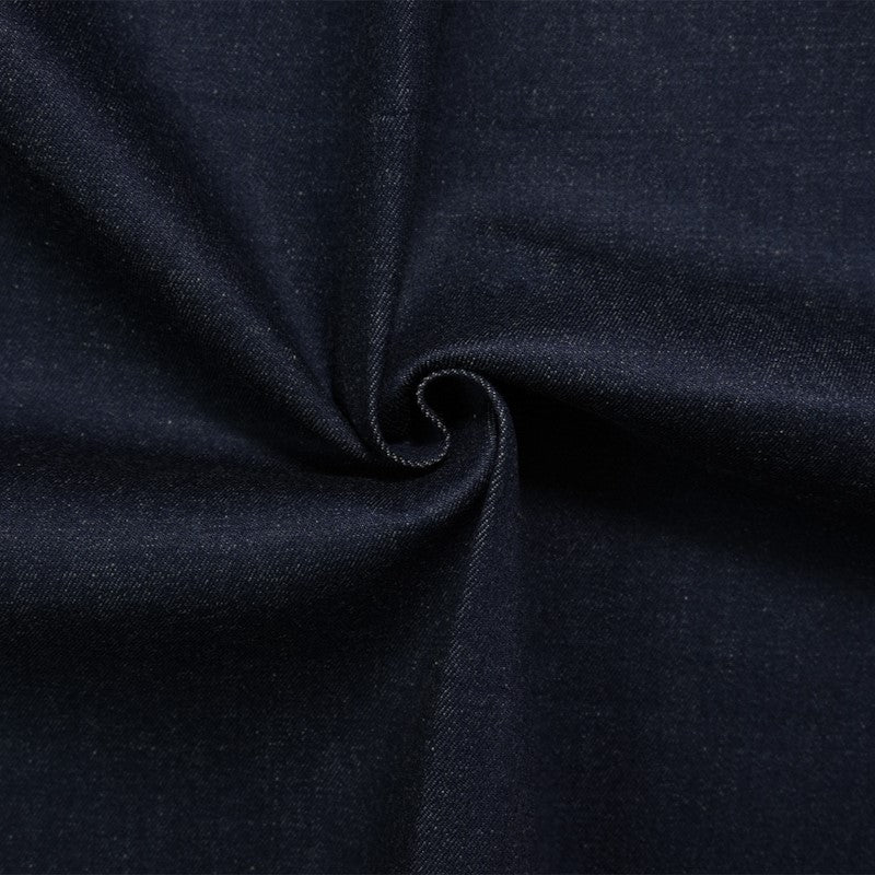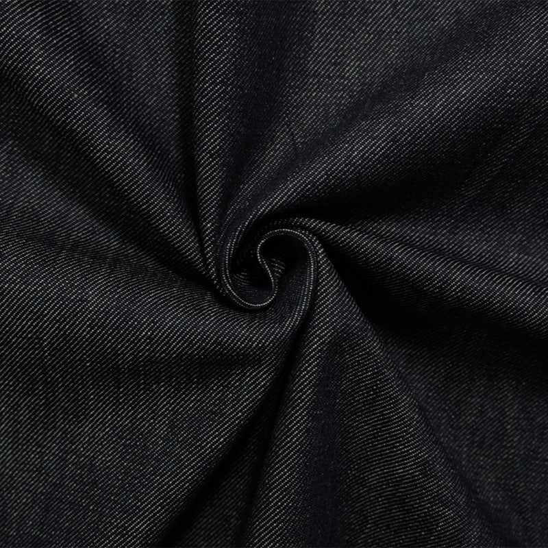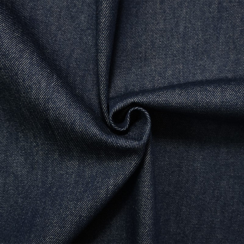 Denim is a durable, twill-weave fabric, traditionally made from cotton, and known for its strength and characteristic diagonal ribbing and striations called tate-ochi. It is commonly dyed with indigo, resulting in the familiar blue color, but is also available in fashion forward colors. A popular choice for clothing, particularly jeans, jackets, and shirts, but can also be used for craft and home dec projects.