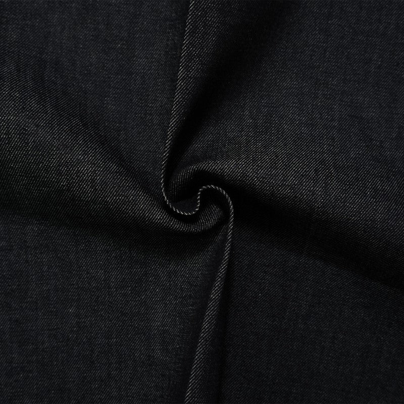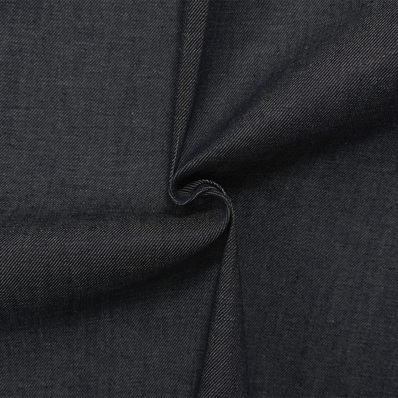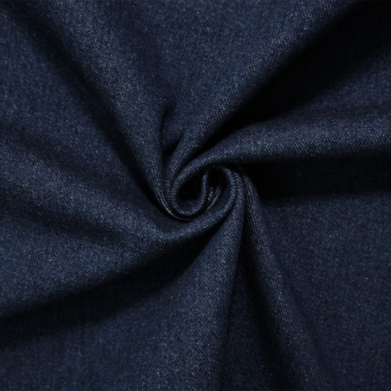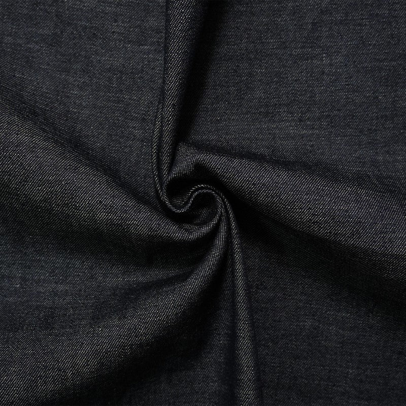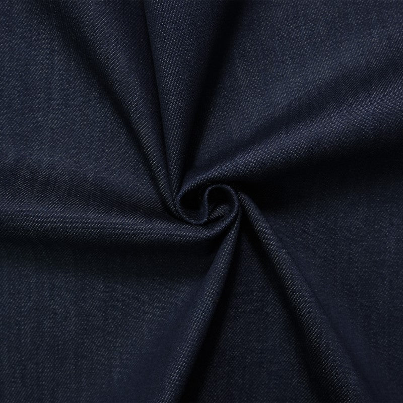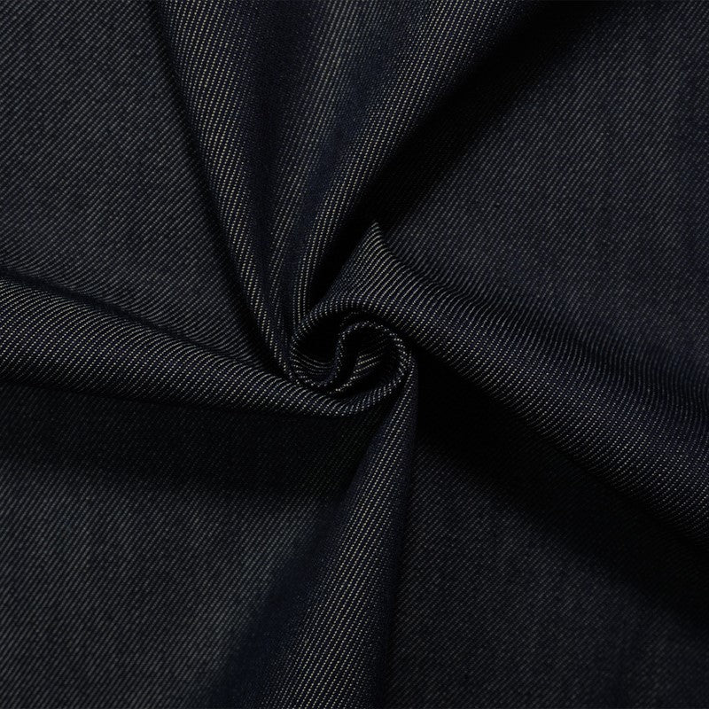 Denim is a durable, twill-weave fabric, traditionally made from cotton, and known for its strength and characteristic diagonal ribbing and striations called tate-ochi. It is commonly dyed with indigo, resulting in the familiar blue color, but is also available in fashion forward colors. A popular choice for clothing, particularly jeans, jackets, and shirts, but can also be used for craft and home dec projects.