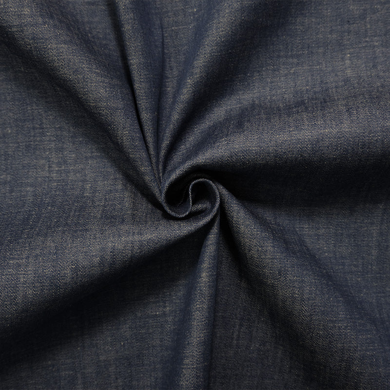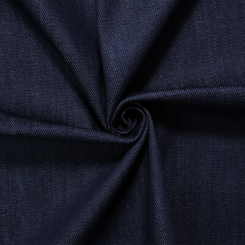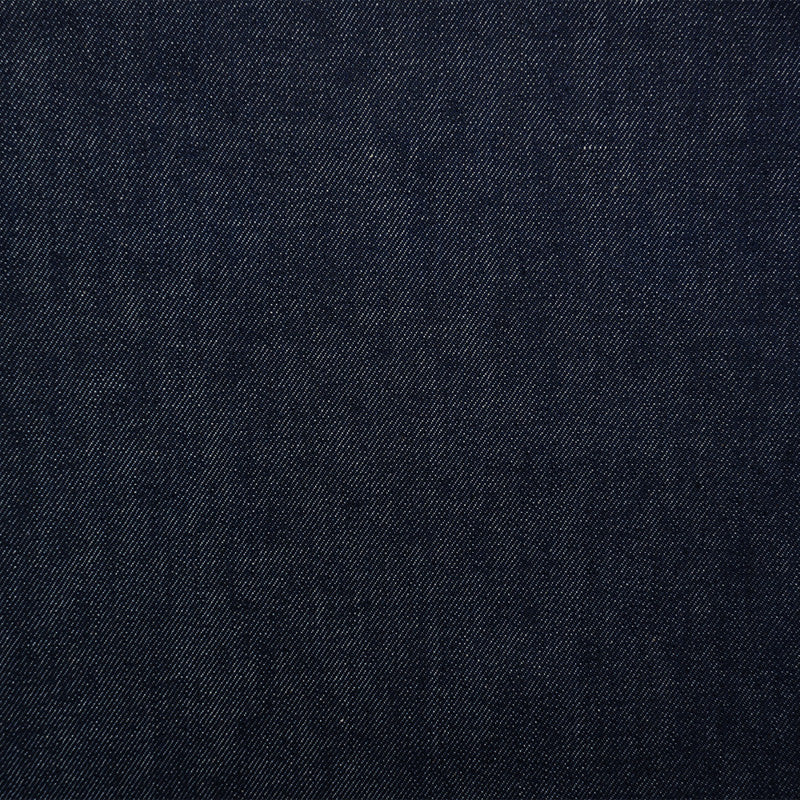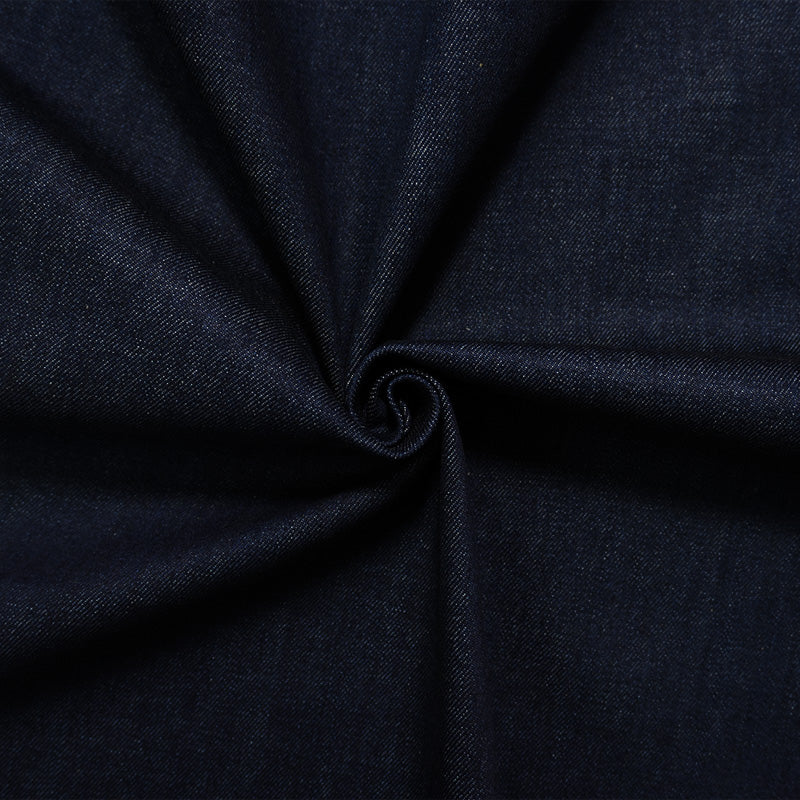 Denim is a durable, twill-weave fabric, traditionally made from cotton, and known for its strength and characteristic diagonal ribbing and striations called tate-ochi. It is commonly dyed with indigo, resulting in the familiar blue color, but is also available in fashion forward colors. A popular choice for clothing, particularly jeans, jackets, and shirts, but can also be used for craft and home dec projects.