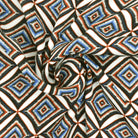 Blue-Multi Famous Designer Diamond-Tile Print Viscose Crepe Faille Fabric