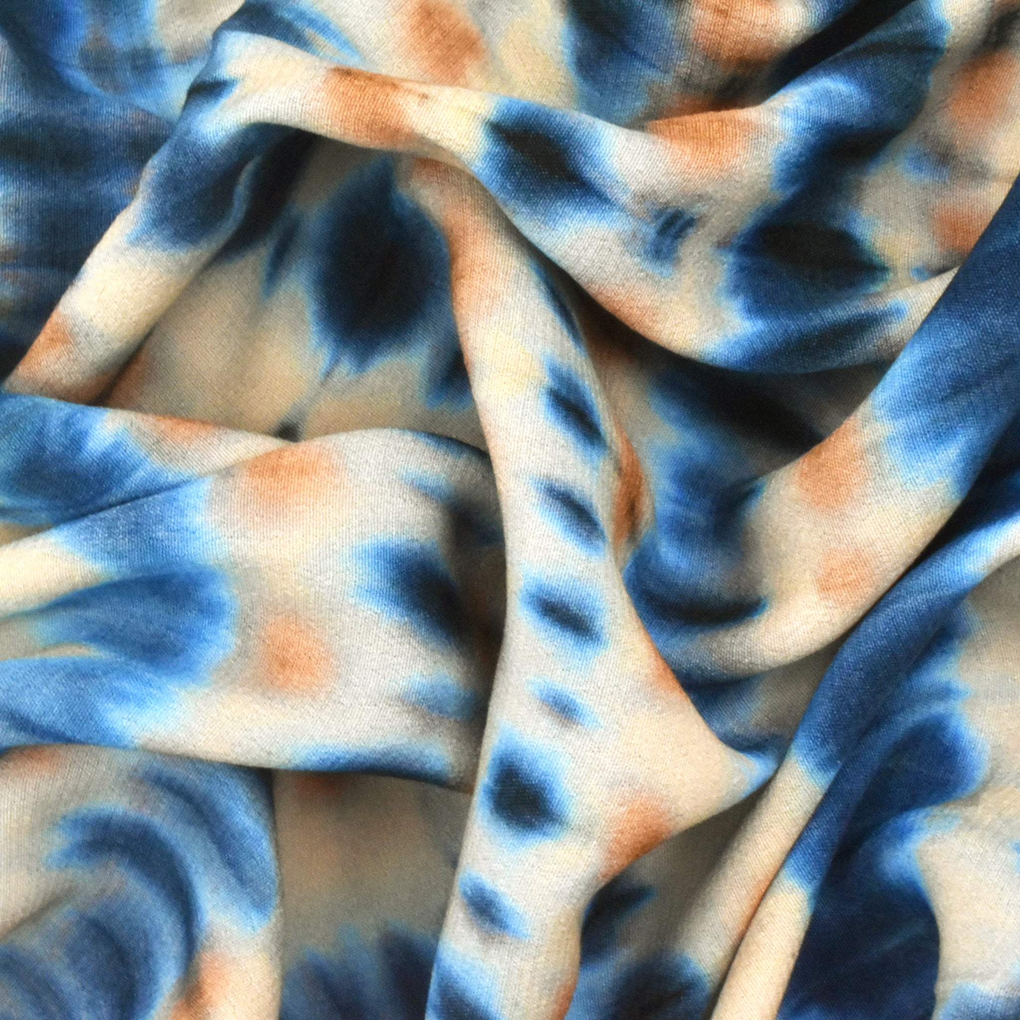 -Famous designer 100% viscose, tie dye printed crepe faille woven fabric, made in Italy