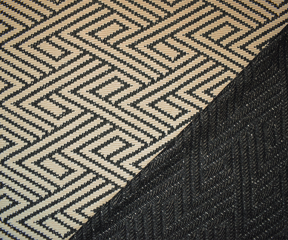 Black-Beige Poly Blend Stretch Chevron Double Jacquard Knit Fabric