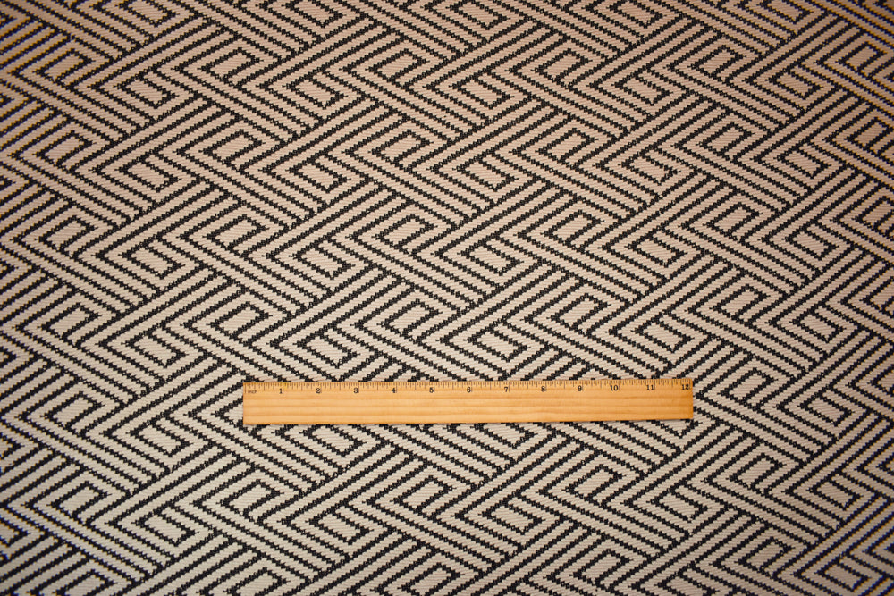 -Black-Beige Poly Blend Stretch Chevron Double Jacquard Knit Fabric