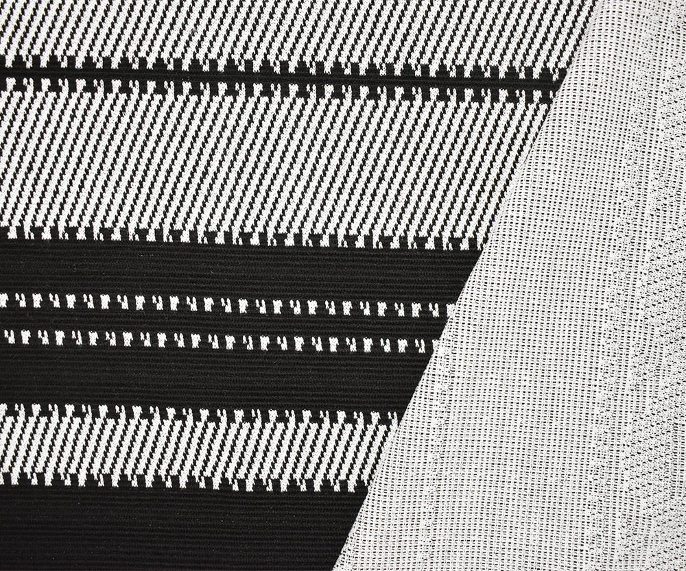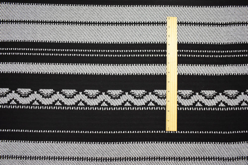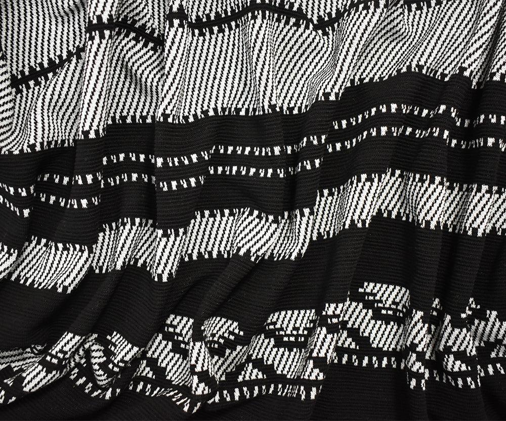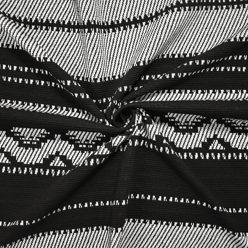 Black-White Polyester Aztec Horizontal Stripe Double Knit Fabric