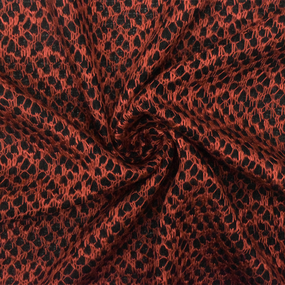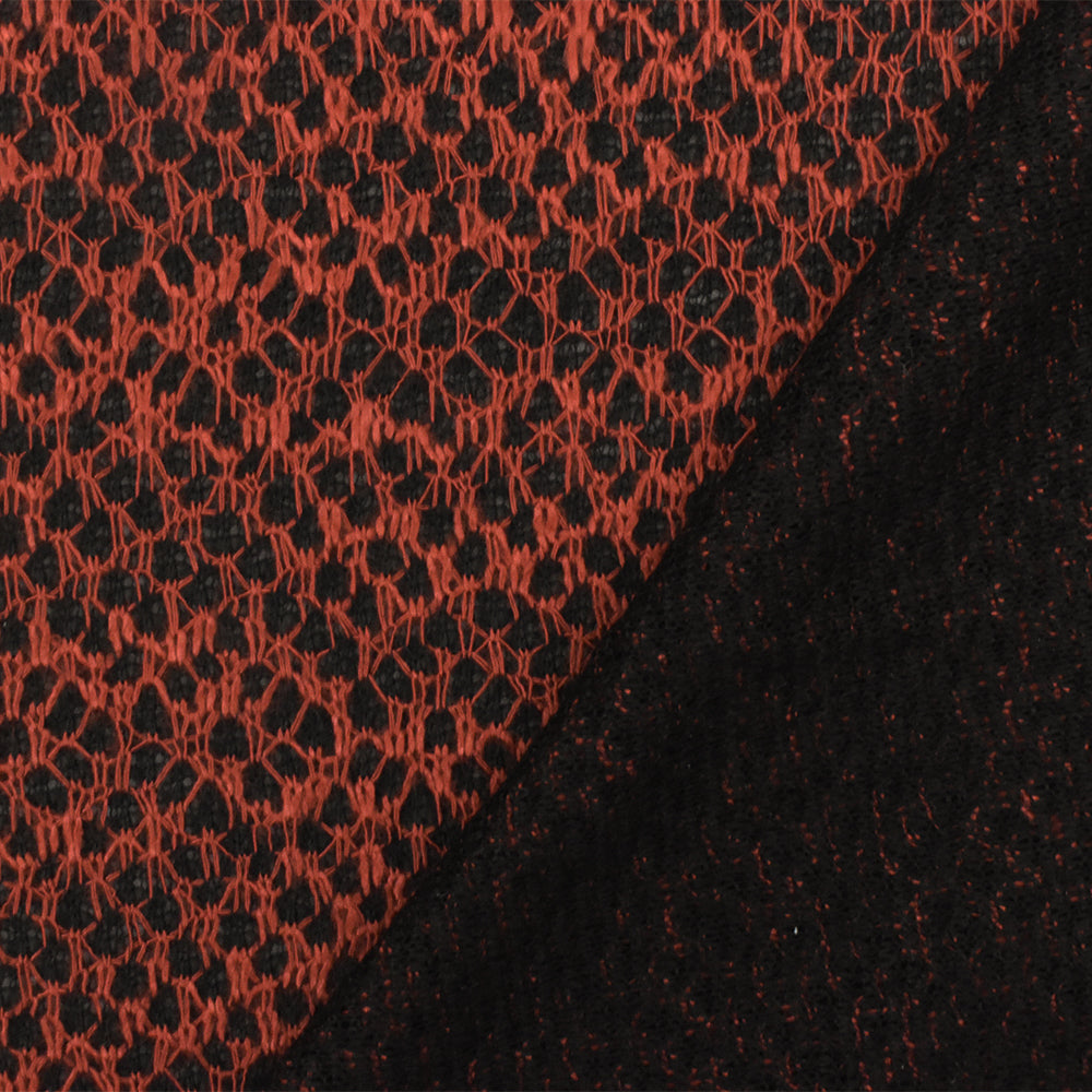 Fire Orange-Black Texture Poly Rayon Double Knit Fabric