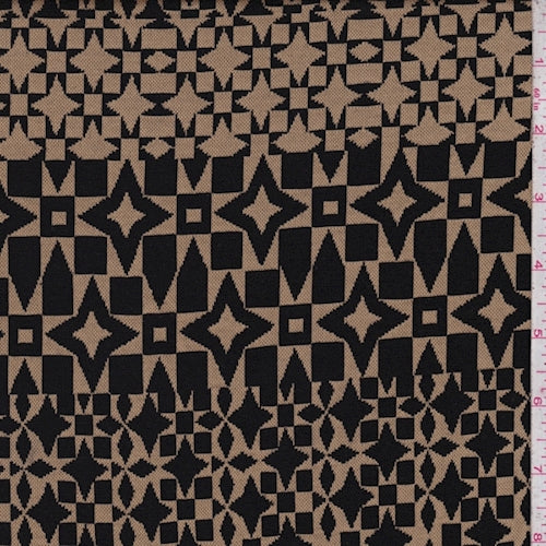 Sandy Tan/Black Geo Jacquard Double Knit Fabric