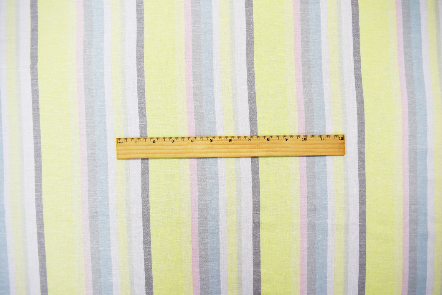 Light Yellow-Pink-Multi Cotton Famous Maker Vertical Stripe Shirting Fabric