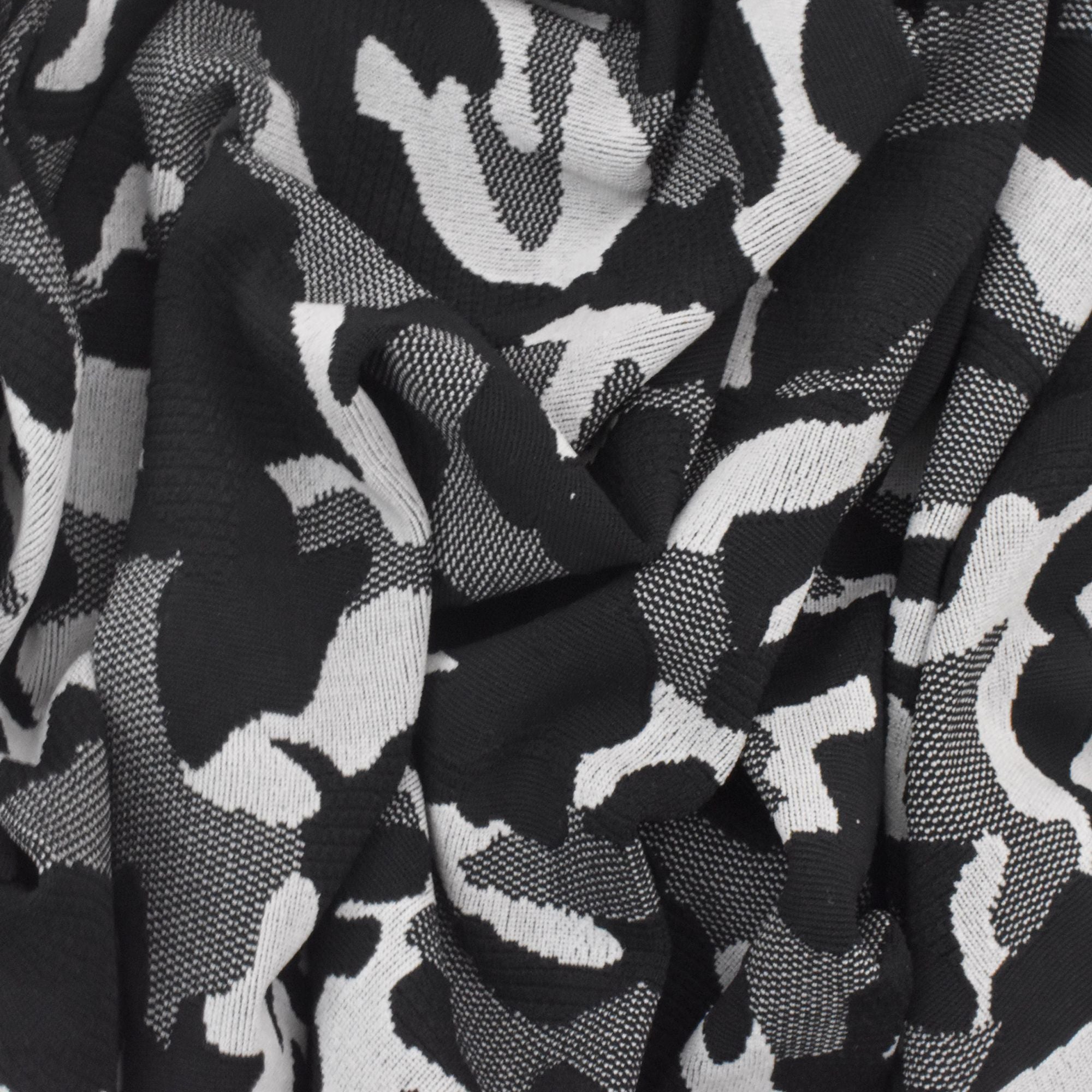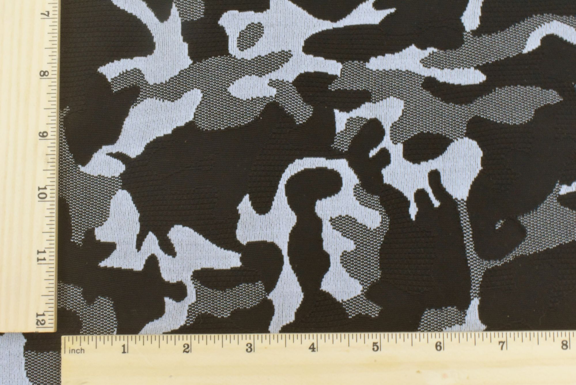 -Black and gray army camo pattern double knit four way stretch yoga activewear fabric from a famous yoga wear company