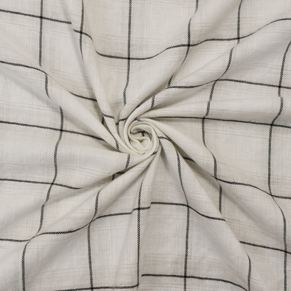 Ivory-Black-Beige Rayon-Cotton Famous Maker Check Plaid Twill Woven Fabric