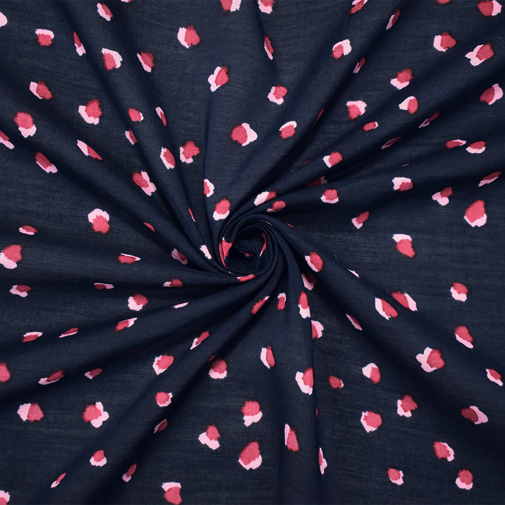 Navy-Red-Pink Cotton Abstract Spots Printed Batiste Woven Fabric