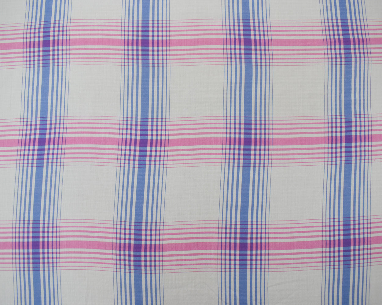 -Poly and rayon blend famous maker crinkled plisse woven fabric with yarn dyed plaid pattern