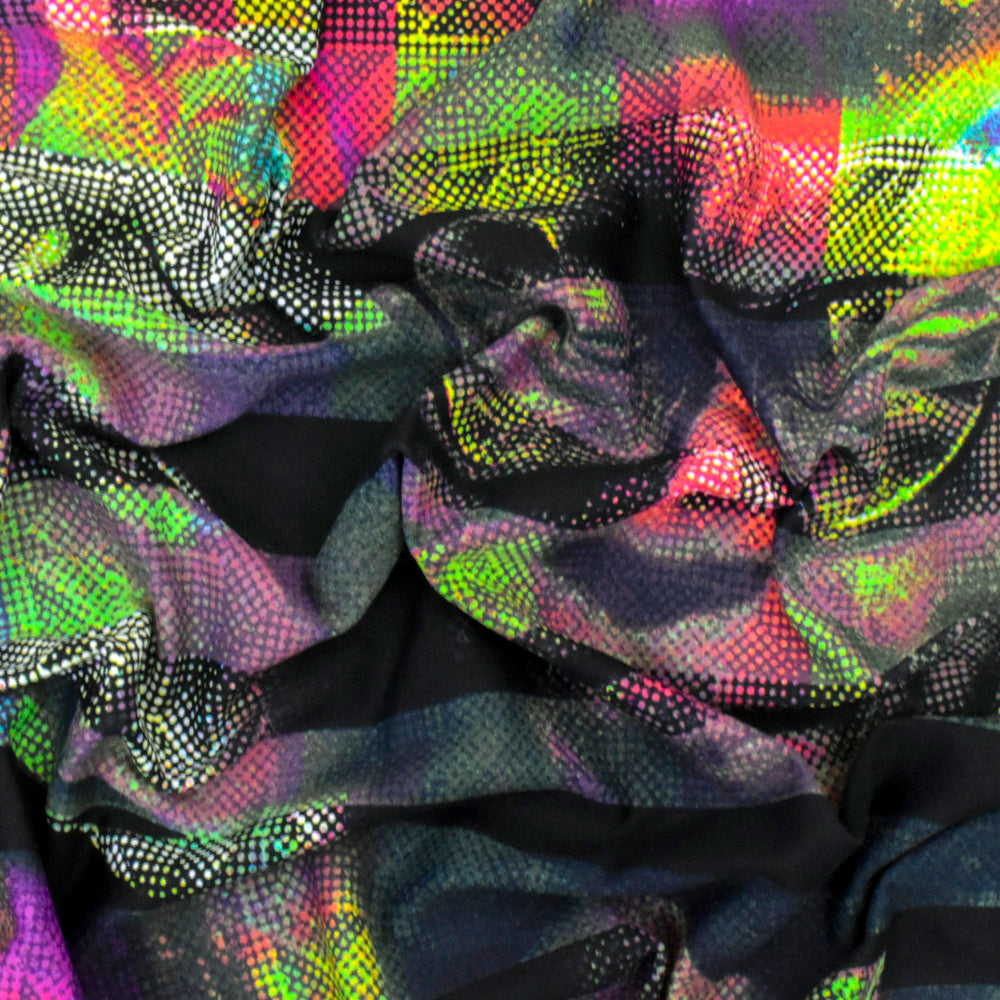 Black Famous Maker Zebra Dot Foil Print Stretch Tricot Swimwear Knit Fabric