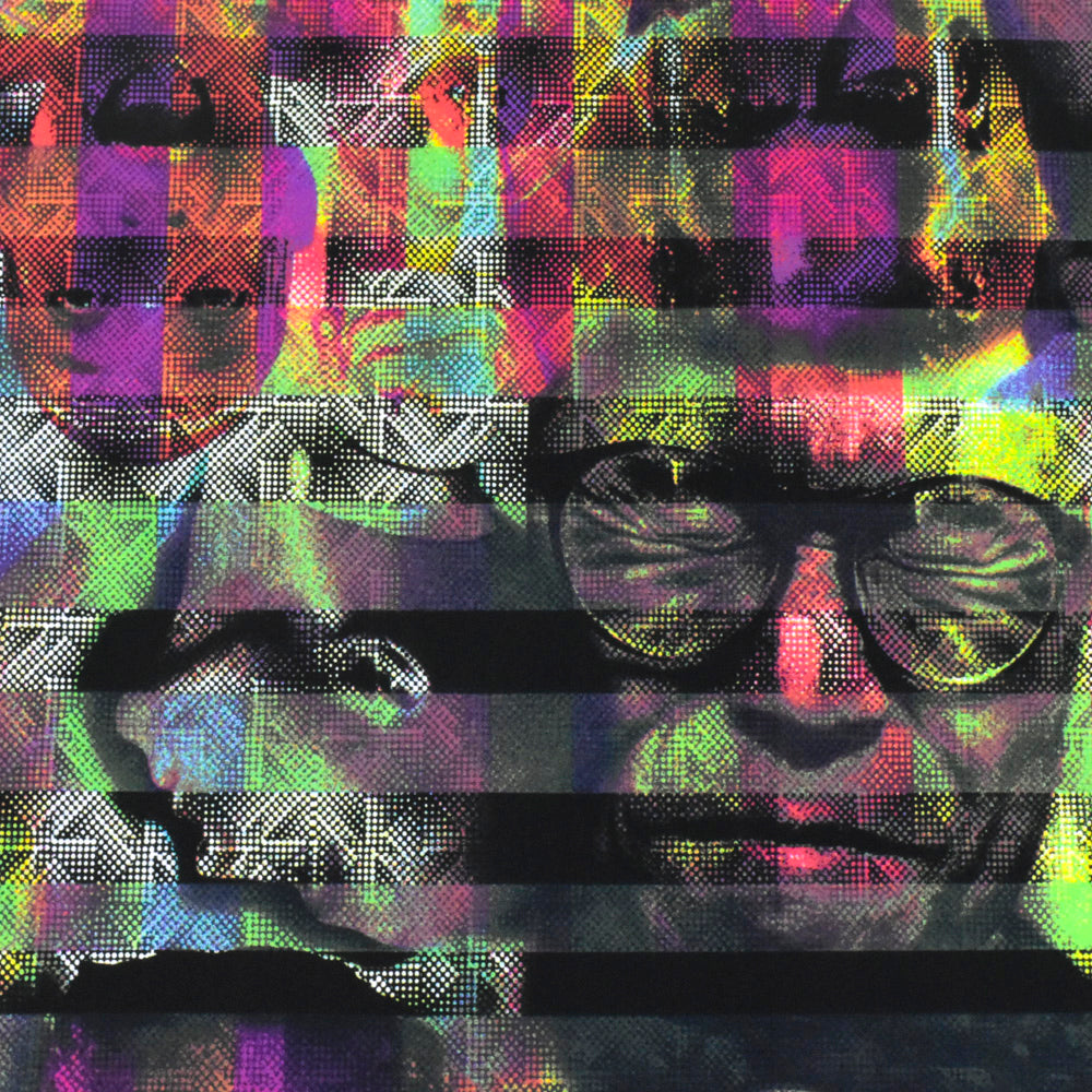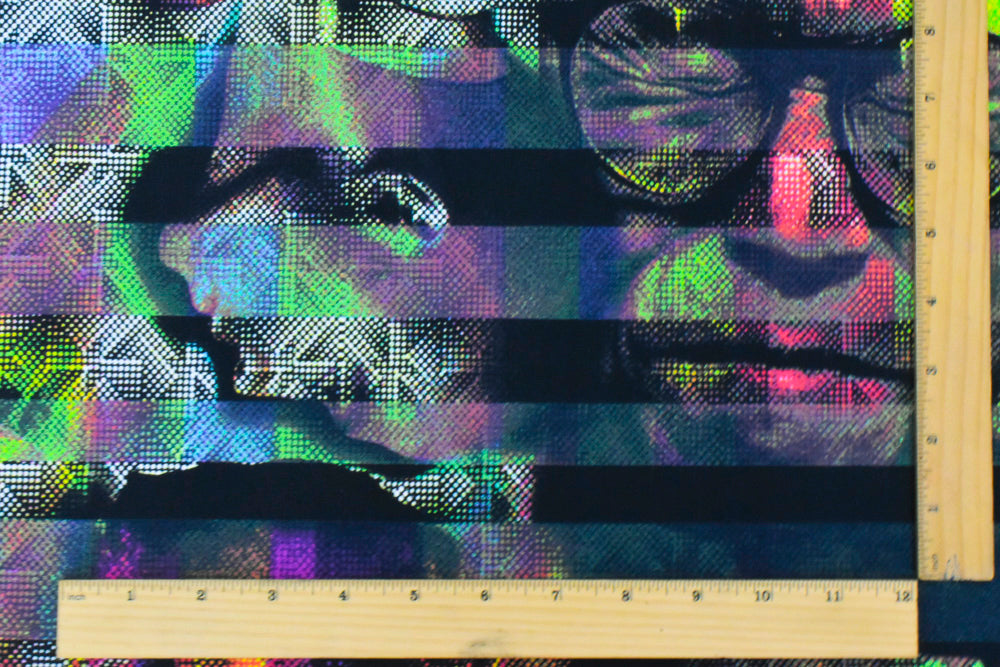 Black-Green-Multi Famous Maker Face Printed Stretch Tricot Swimwear Fabric