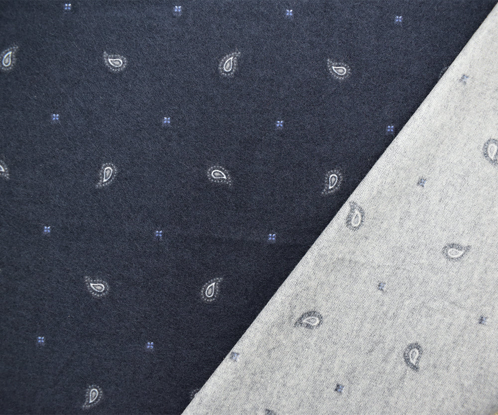 -100% cotton double brushed flannelette woven fabric printed with mini paisley and mini florals. Made in Japan.