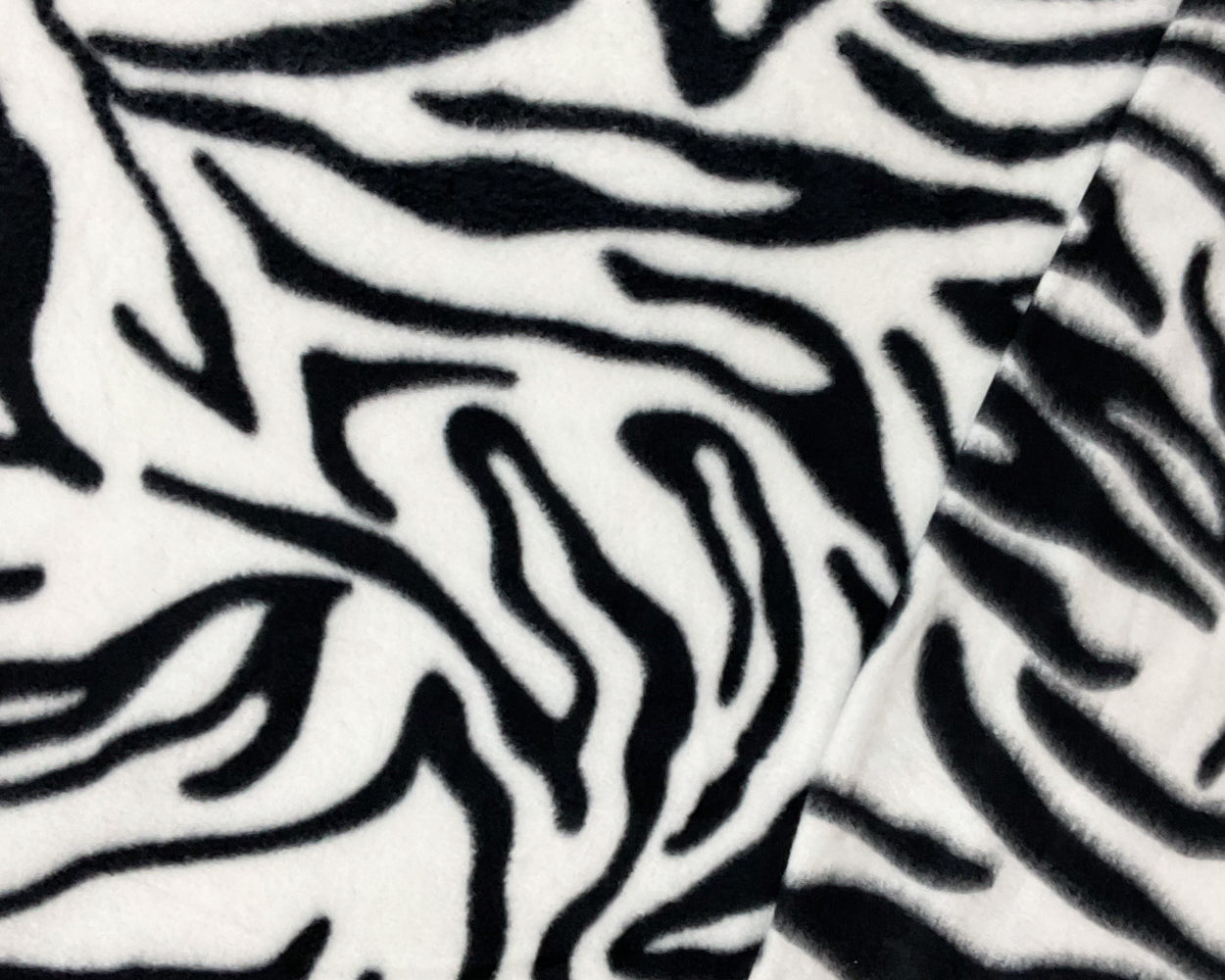 -325G/Y, White-Black Polyester Tiger Printed Polar Fleece Knit Fabric