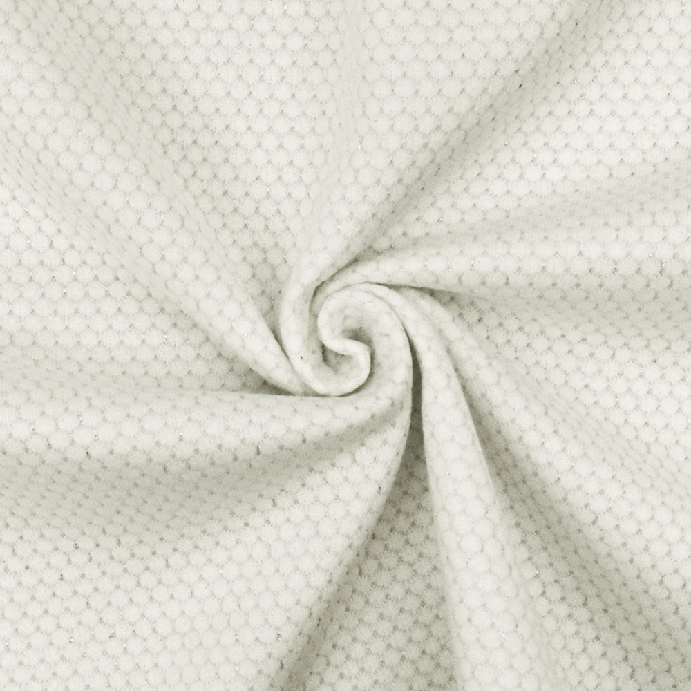 White-Silver Honeycomb Metallic Jacquard Fleece Back Jersey Knit Fabric