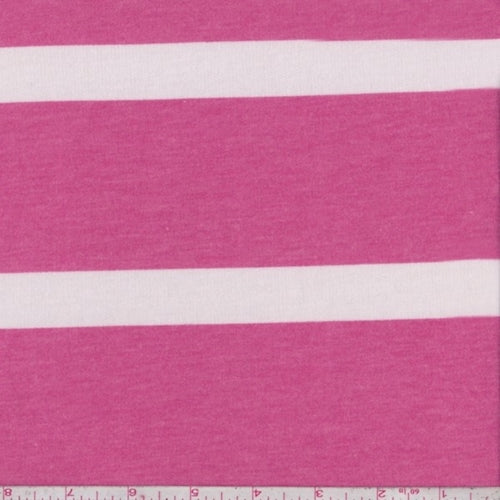 Raspberry/White Stripe French Terry Knit Fabric