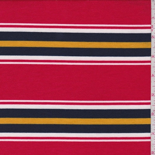Red/Navy/Gold Stripe Double Brushed French Terry Knit Fabric