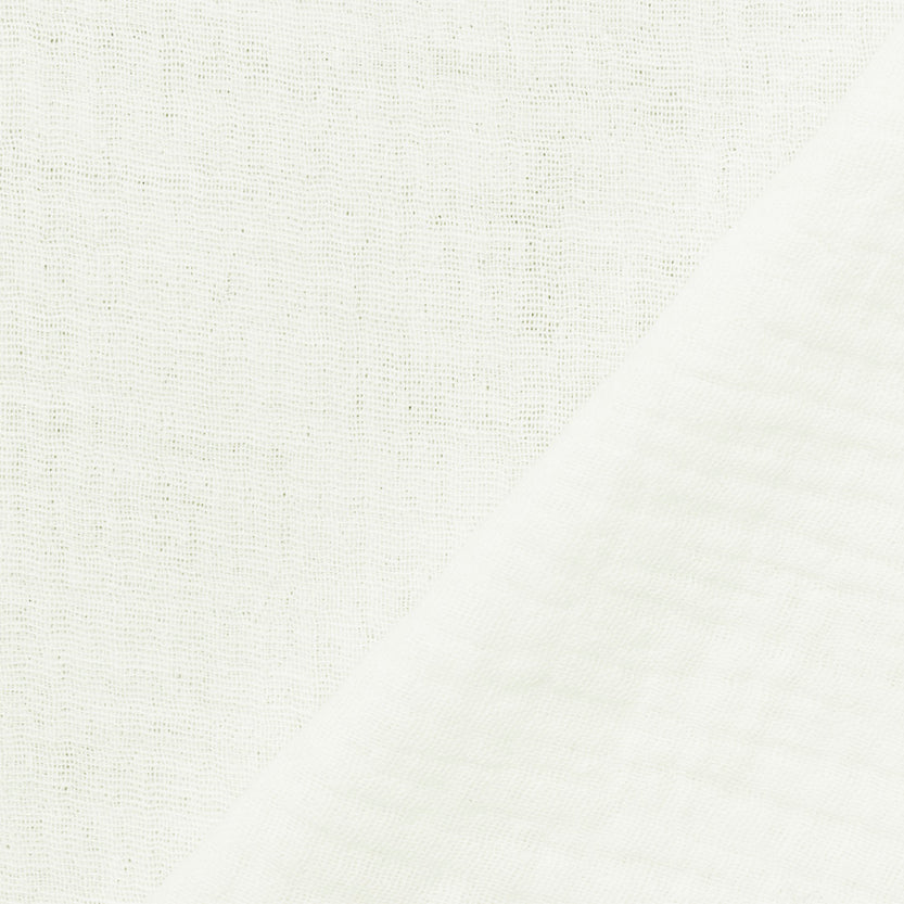 Gauze is a a lightweight, sheer fabric characterized by its open, loosely woven structure, often with a slightly crinkled texture and made usually of cotton. Double gauze is a lightweight fabric made from two thin layers of cotton gauze stitched together creating a soft, airy, and slightly crinkled texture. Both have excellent breathability and a comfortable feel, and our popular for many types of garments, headbands, baby swaddles and blankets.