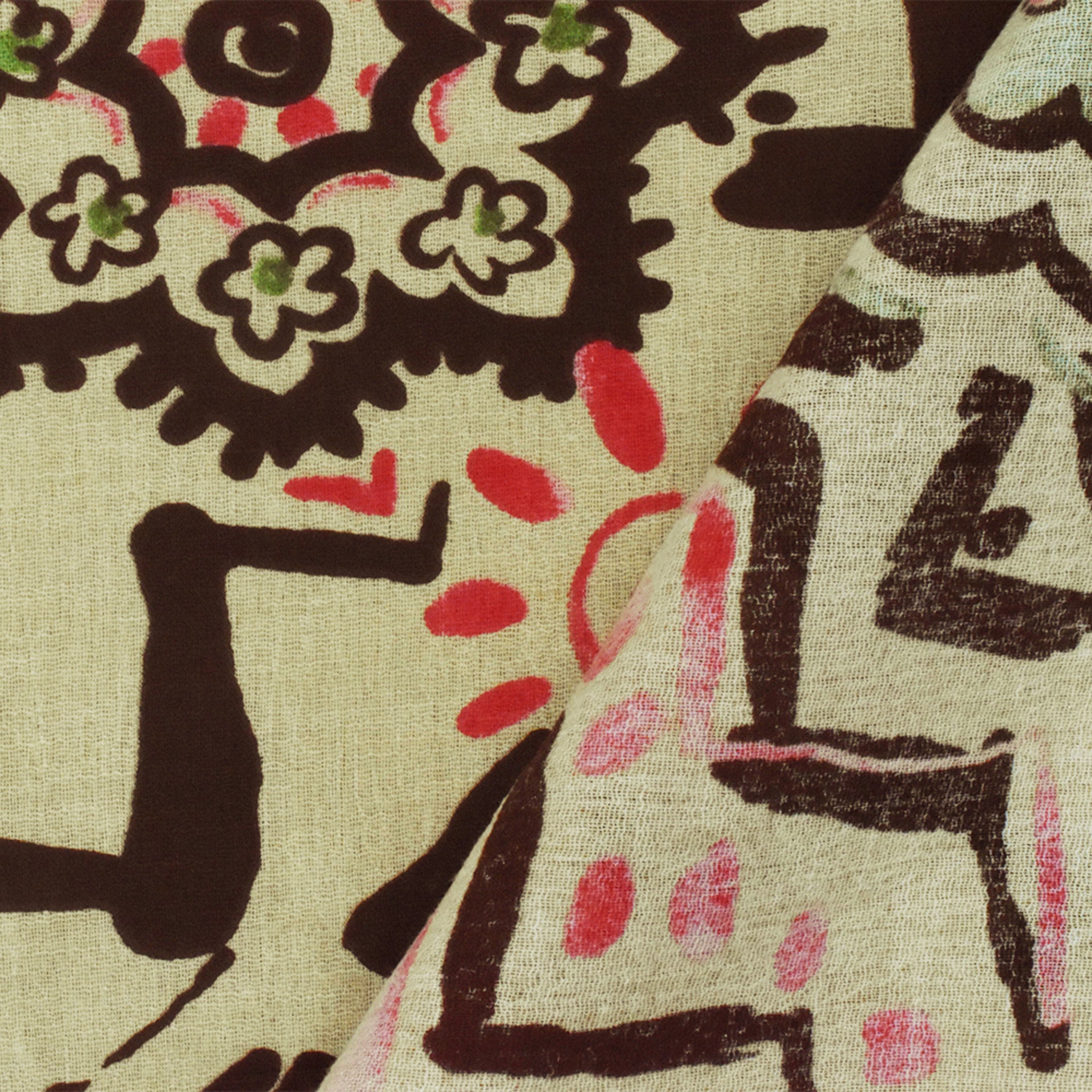 Beige-Brown-Multi Aztec And Floral Printed Cotton Gauze Woven Fabric