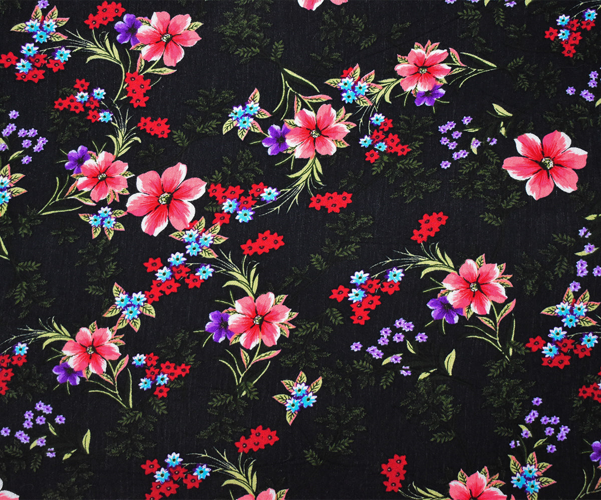 Black-Red-Multi Cotton Floral Printed Gauze Woven Fabric
