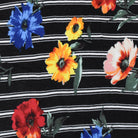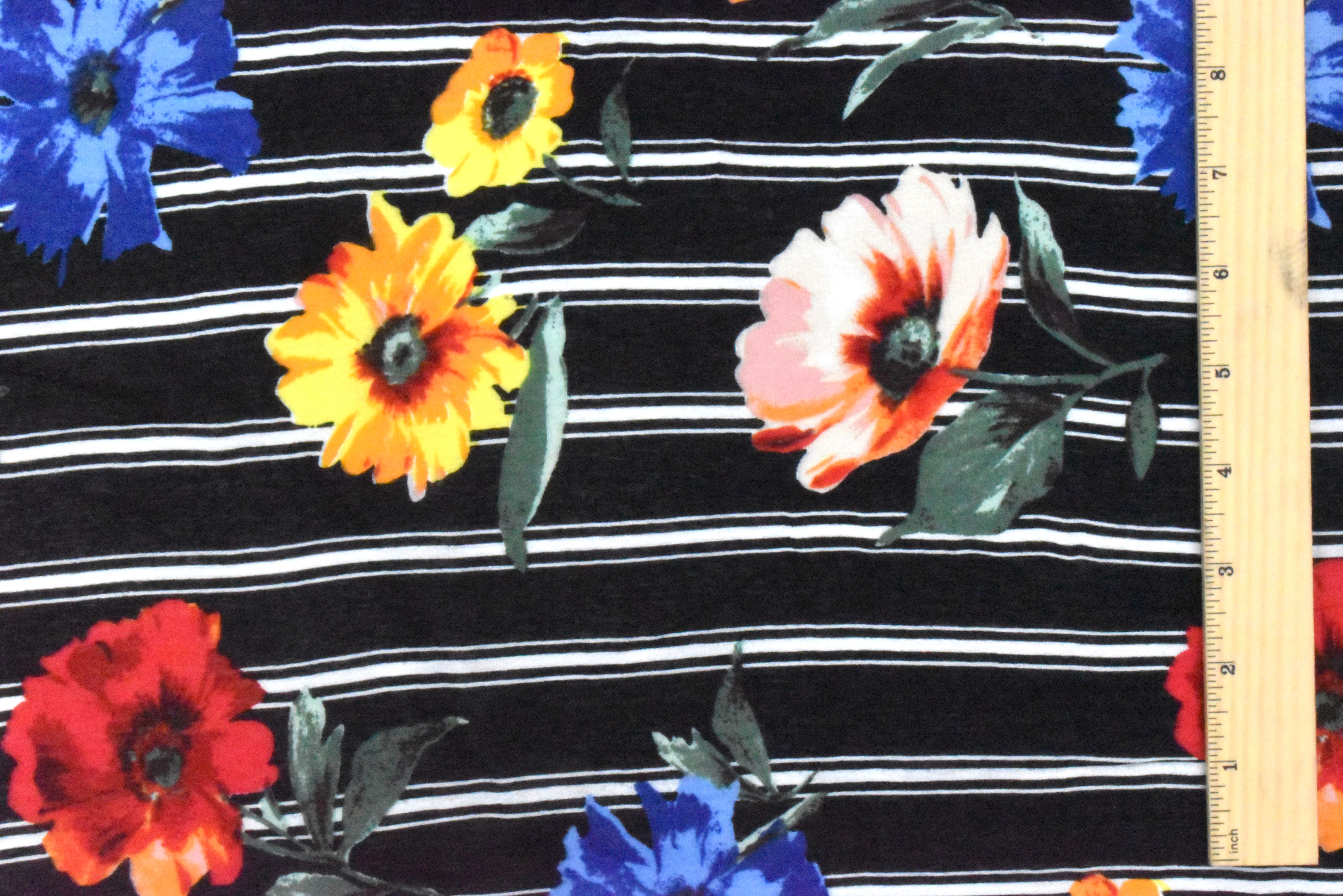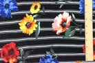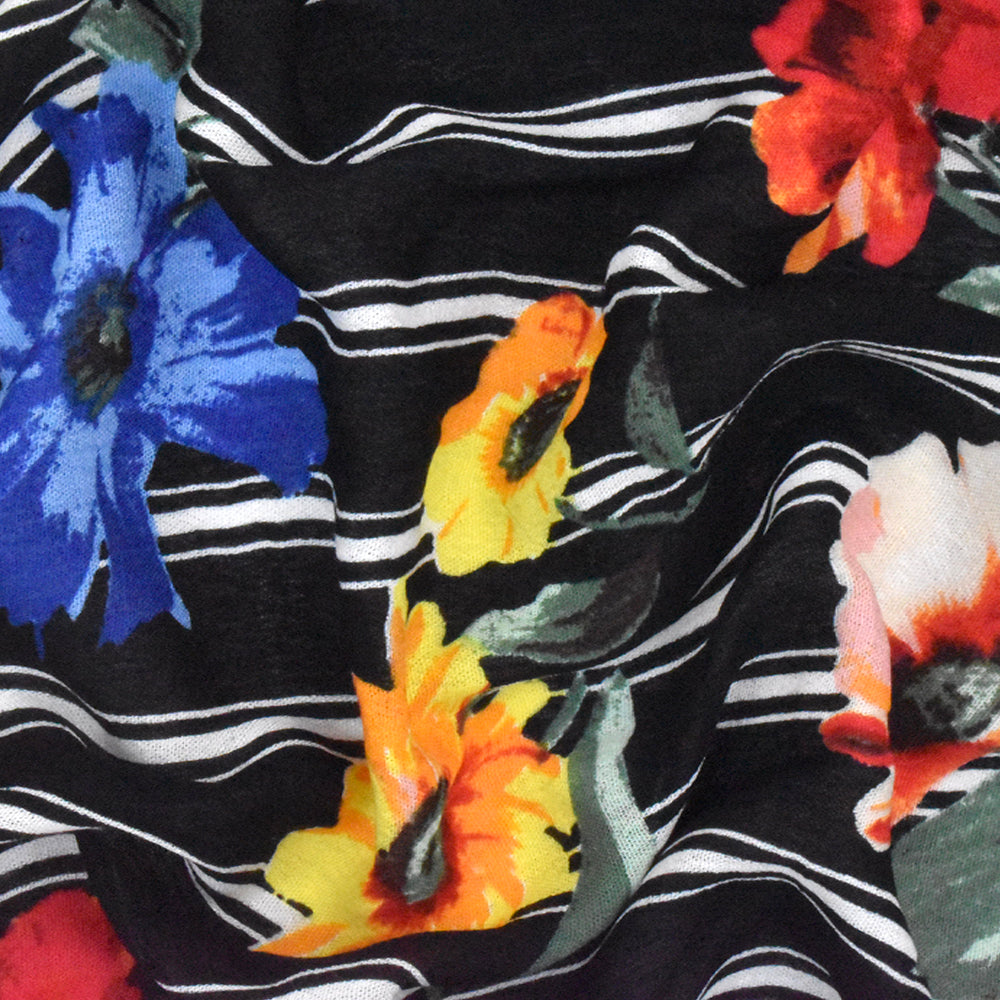 Black-Yellow-Multi Floral Stripe Printed Rayon Gauze Woven Fabric