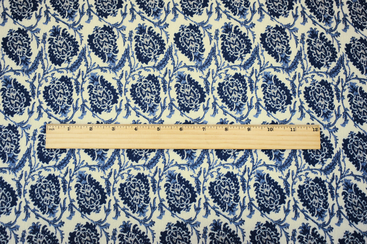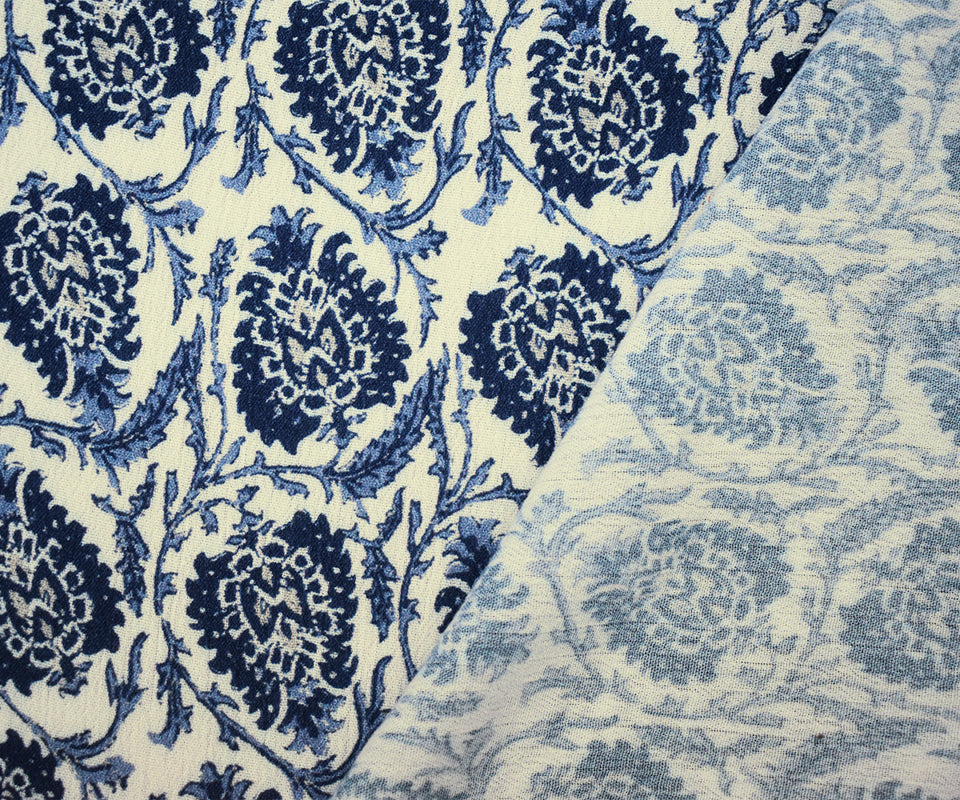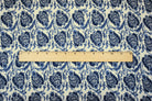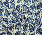 Blue-Ivory-Multi Famous Designer Leaves Print Gauze Woven Fabric
