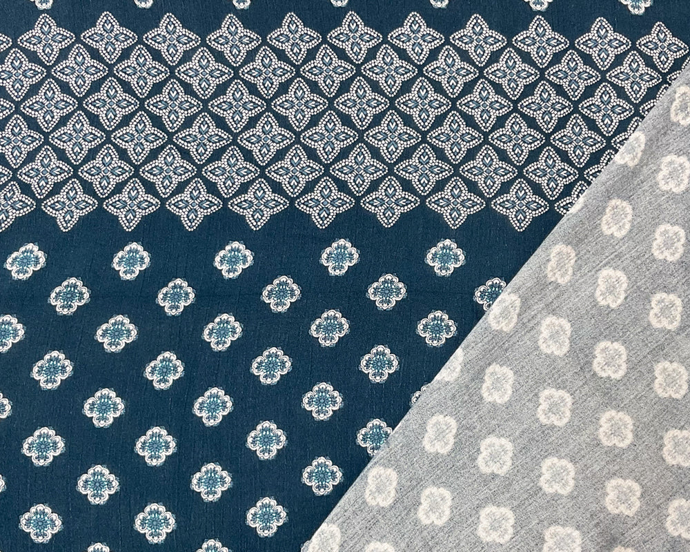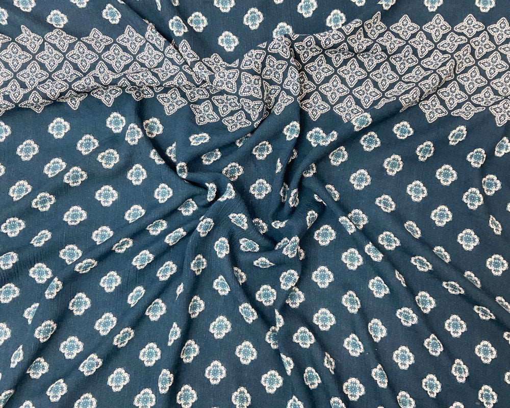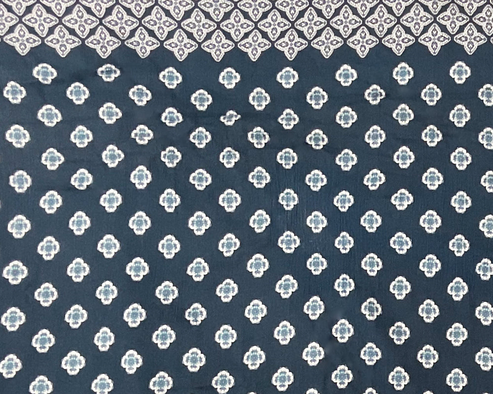 -Blue-White Cotton Floral Border Printed Gauze Woven Fabric