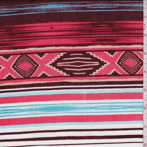 Coral/Wine Aztec Striped Block Crinkled Gauze Fabric