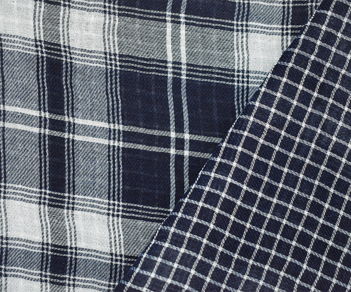 -Famous maker 100% cotton double gauze woven fabric featuring a traditional plaid pattern on one side, and a check-plaid pattern on the reverse.