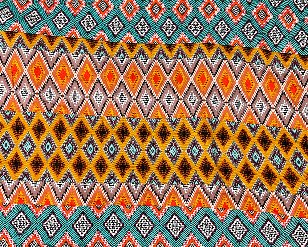 -Orange-Turquoise-Multi Multi Cotton Aztec Printed Gauze Woven Fabric