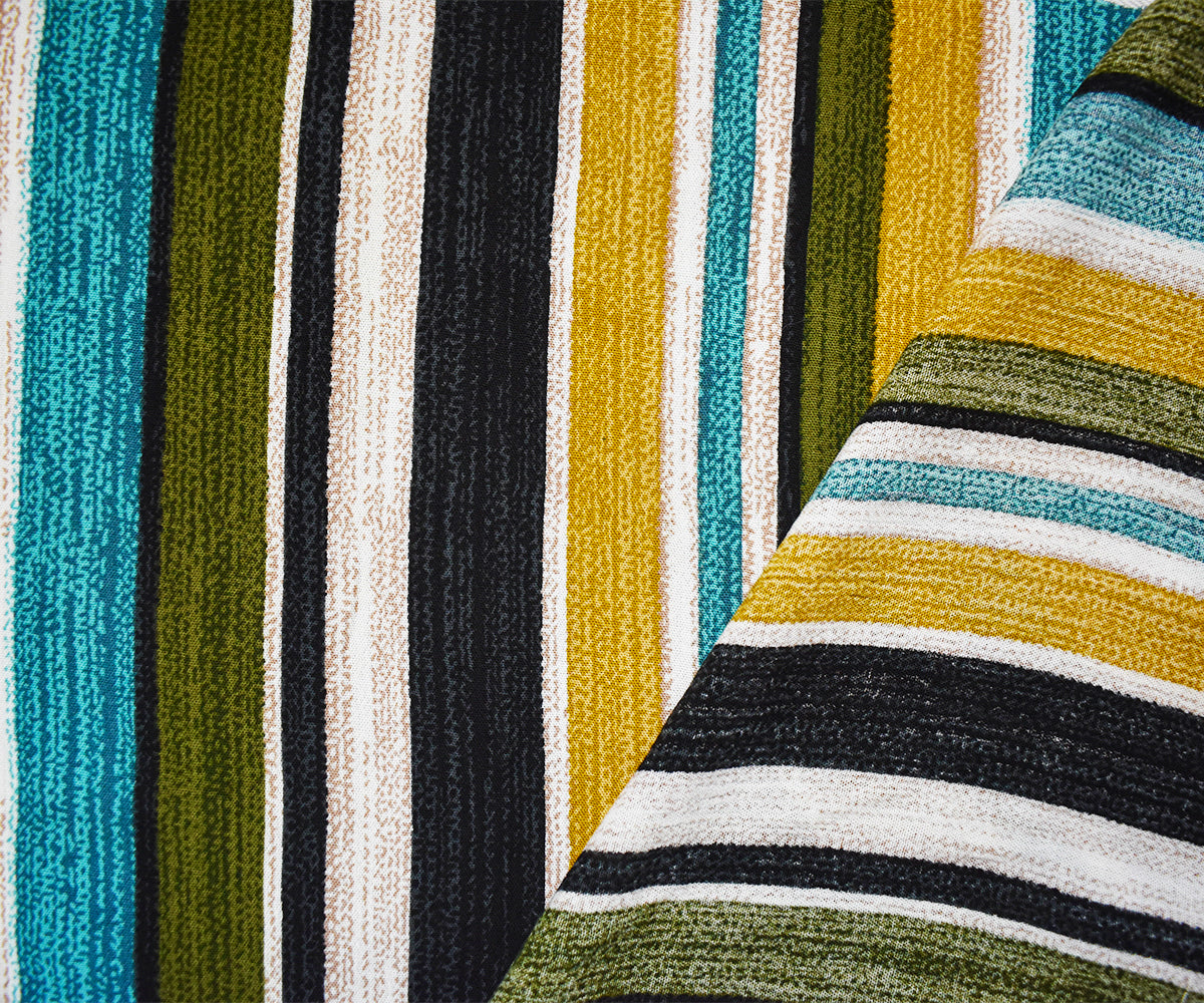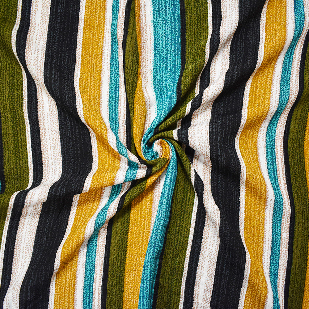 Teal-Dijon-Multi Cotton Stripe Printed Gauze Woven Fabric