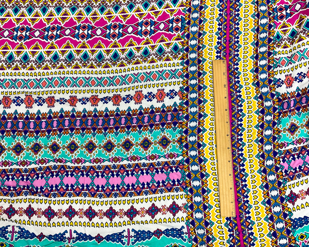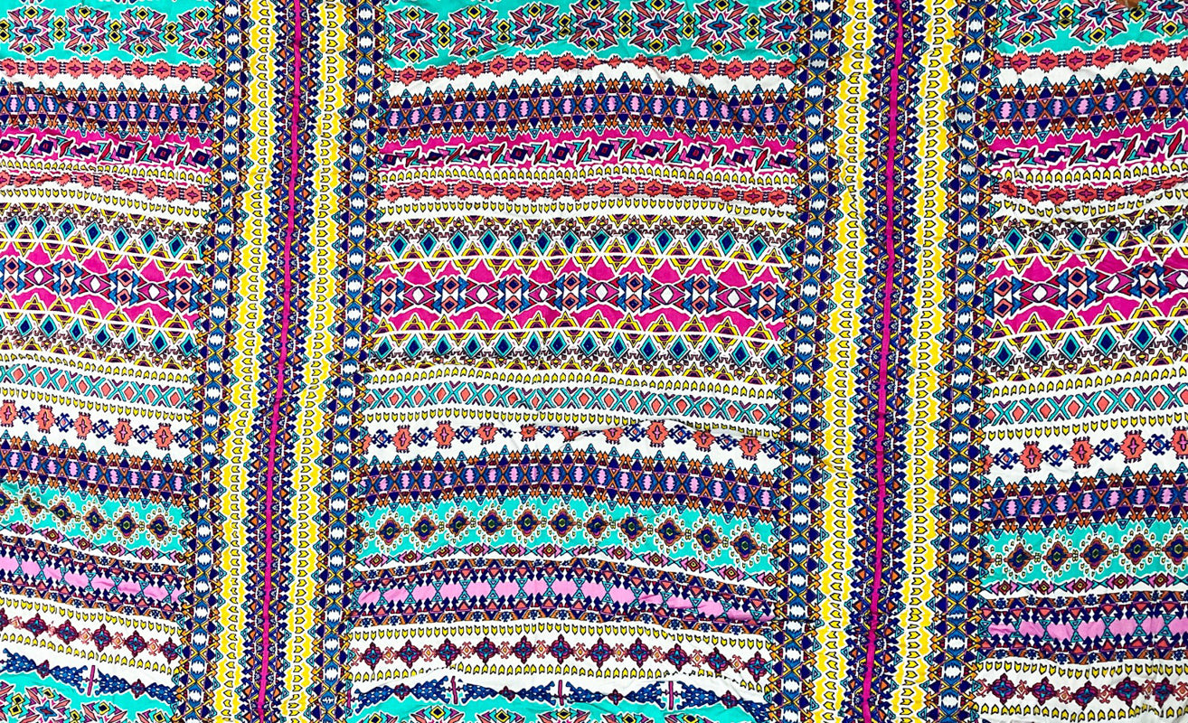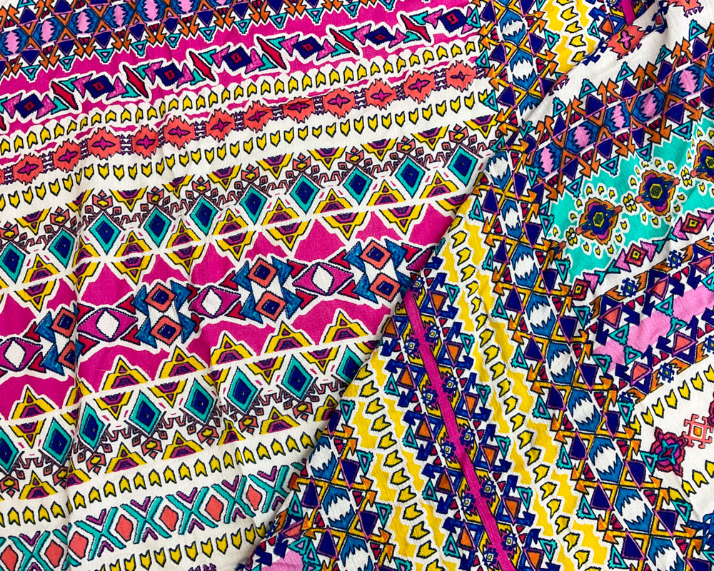 -White-Pink-Multi Cotton Aztec Printed Gauze Woven Fabric