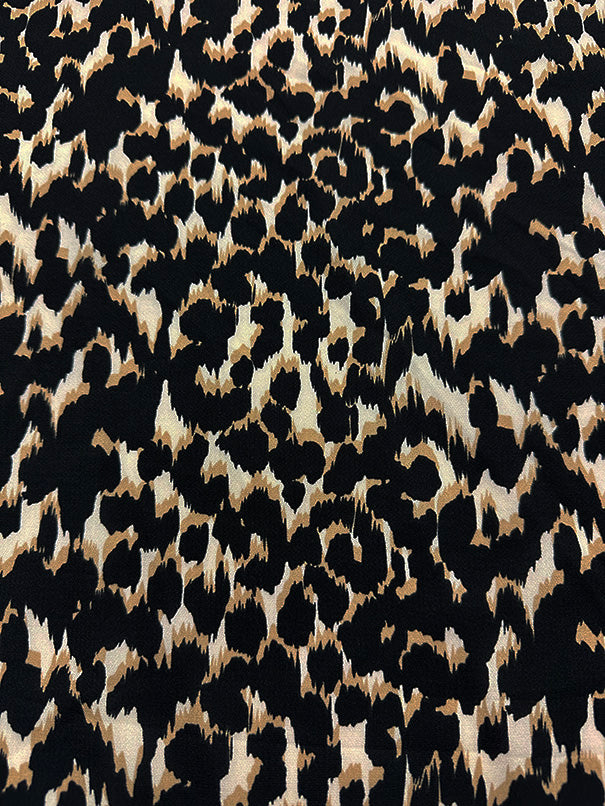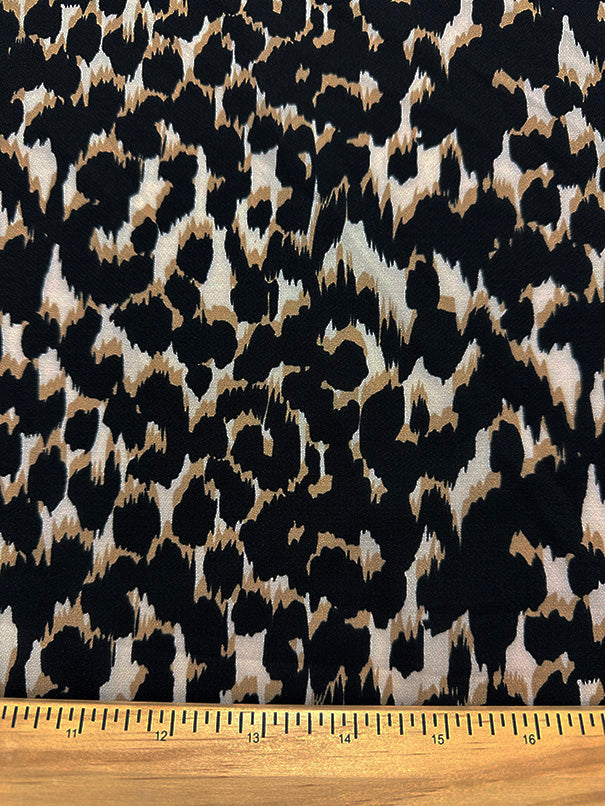 -Beige, Tan, & Black Multi Print Poly Georgette Fabric