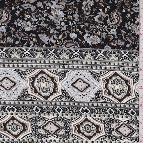 Black/Grey/Brown Paisley/Floral Crepe Georgette Fabric
