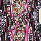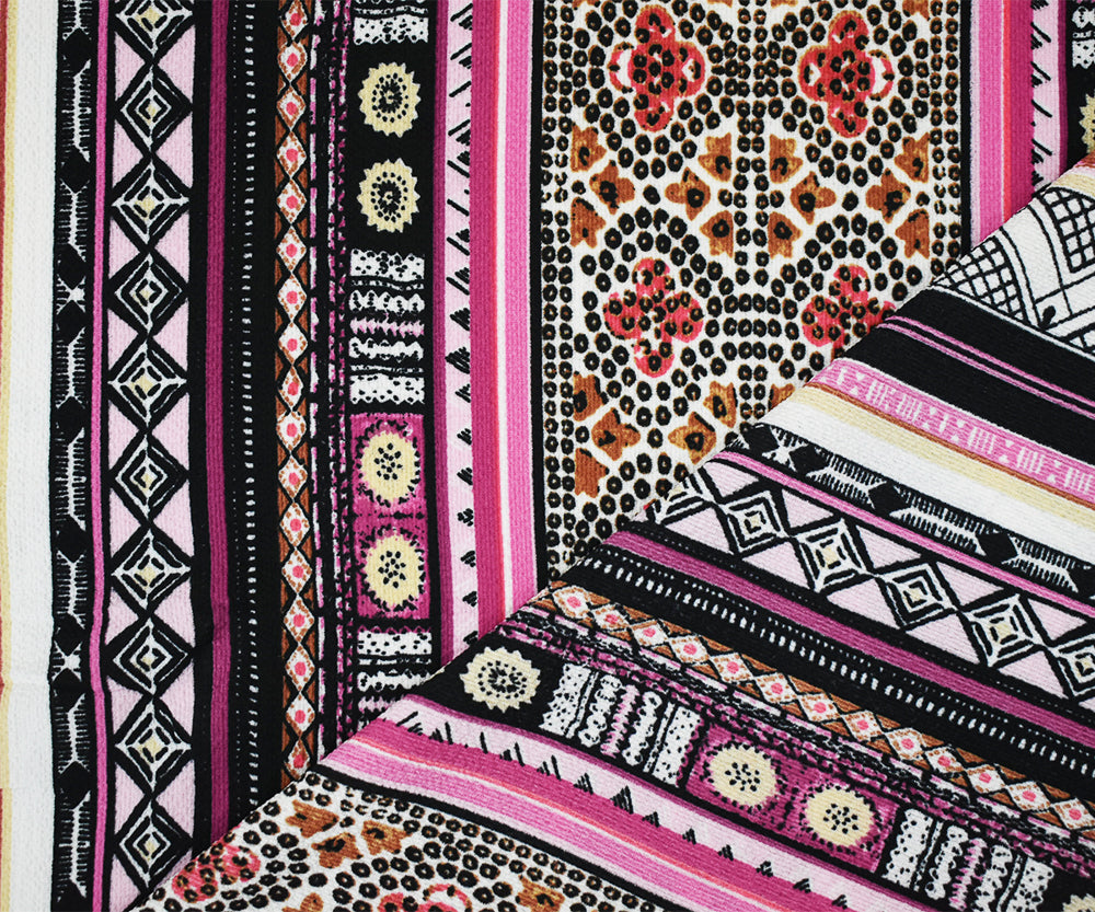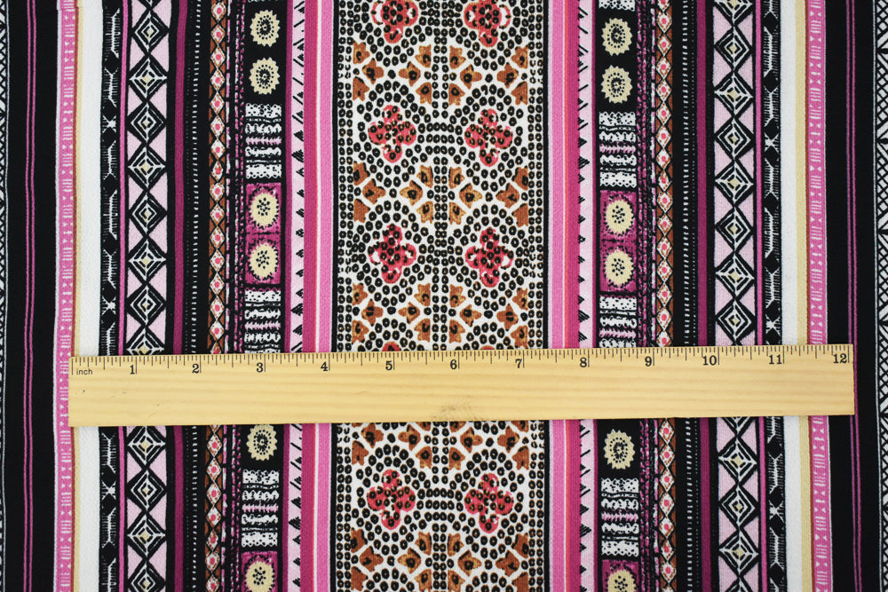 Black-Pink Polyester Tribal Stripes Printed Crepe Texture Georgette Fabric