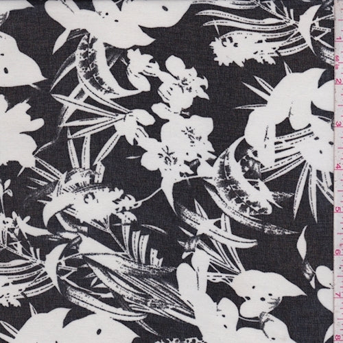 -Polyester crepe georgette fabric printed with a simple tropical floral design