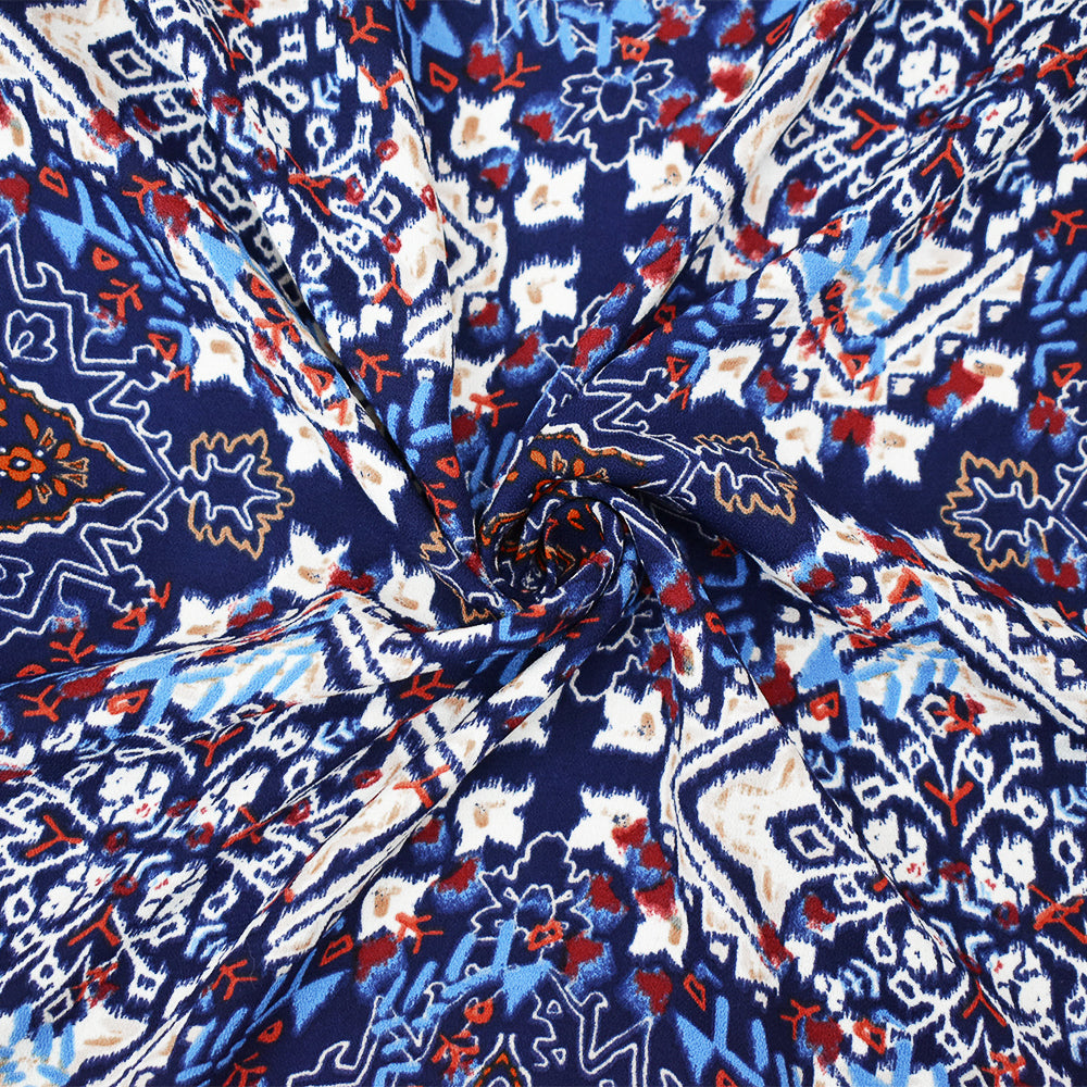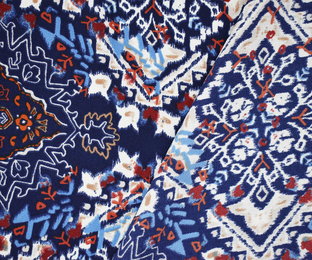 -100% polyester crepe momie georgette woven fabric printed with a Moroccan inspired pattern
