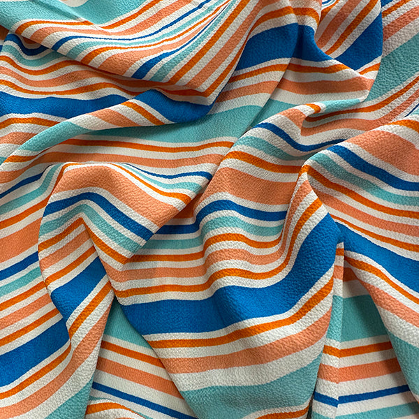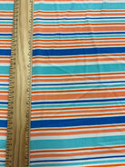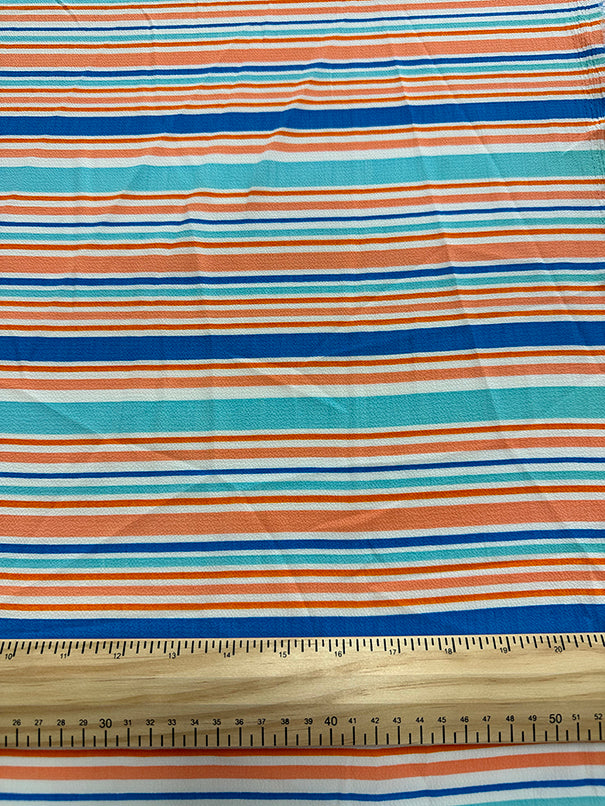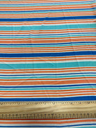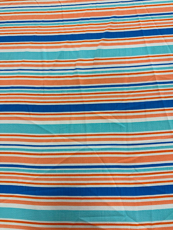 -Blue-Orange Multi Stripe Crepe Georgette Fabric