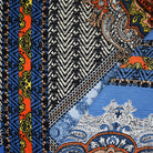 Blue-Orange-Multi Baroque Printed Poly Crepe Georgette Woven Fabric