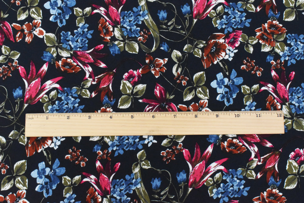 Blue-Red-Multi Floral Printed Poly Georgette Woven Fabric