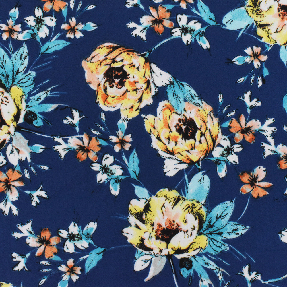 Blue-Yellow-Multi Poly Floral Printed Crepe Momie Georgette Woven Fabric