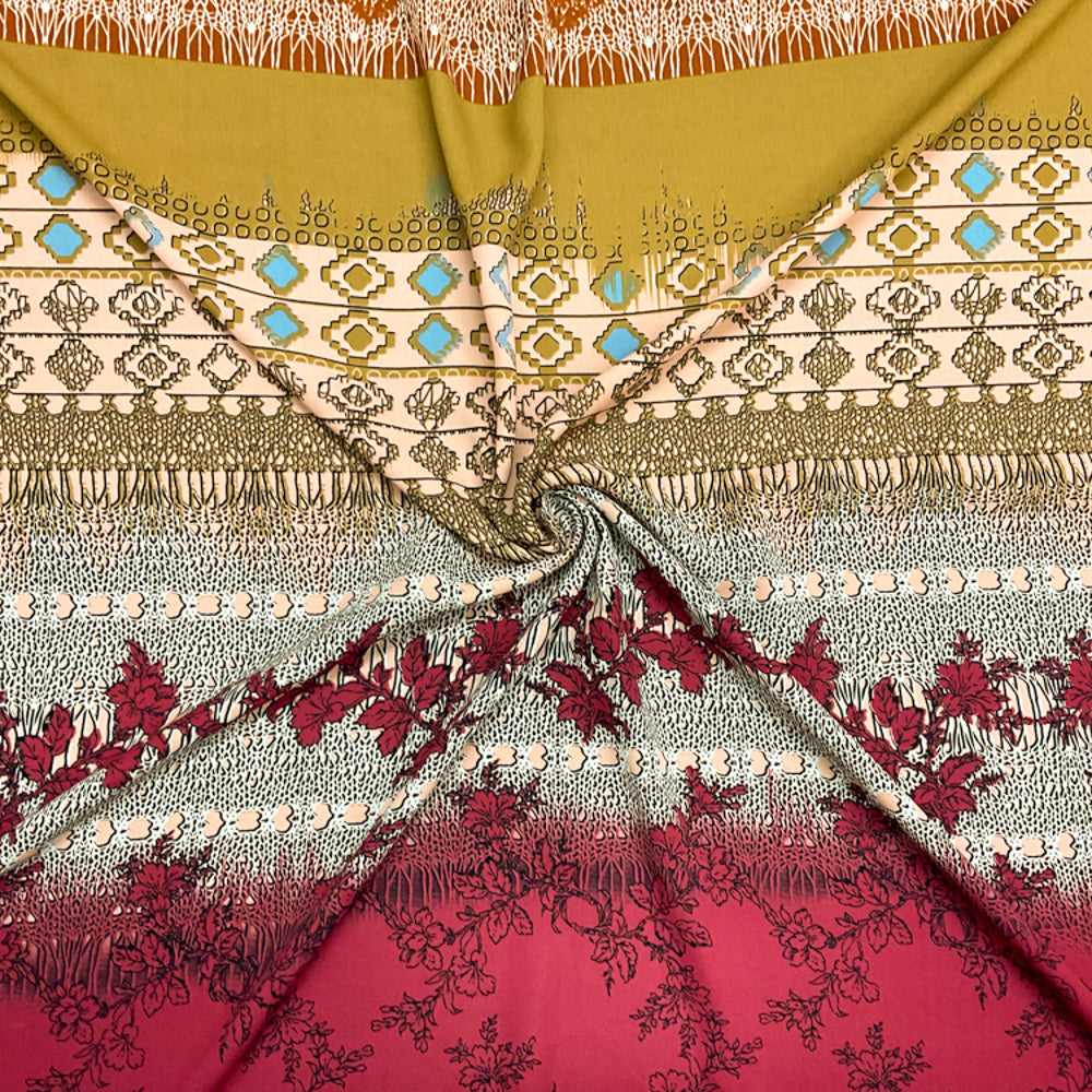 -Brown-Red-Multi Poly Stripe Multi Pattern Printed Georgette Woven Fabric