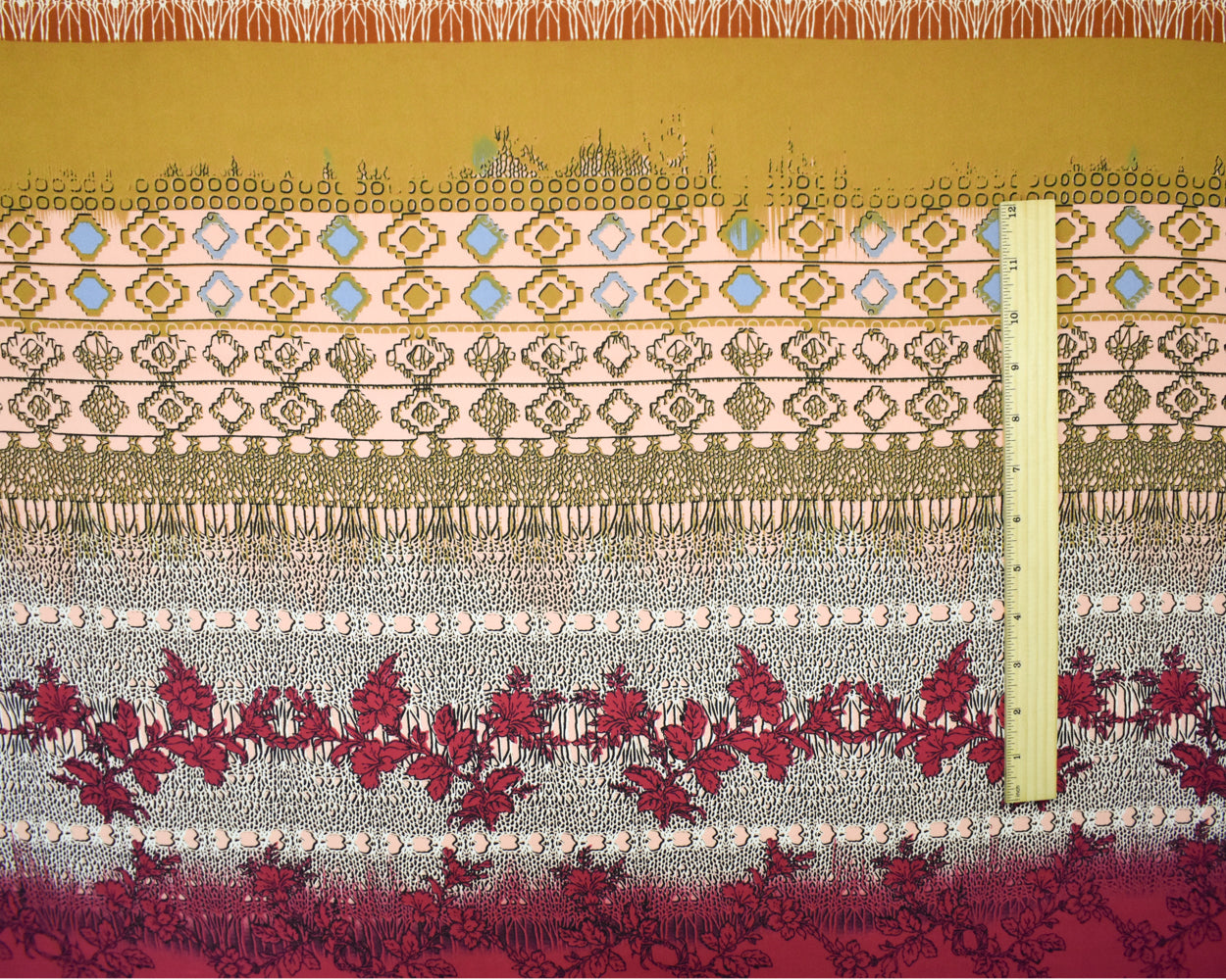 Brown-Red-Multi Poly Stripe Multi Pattern Printed Georgette Woven Fabric