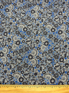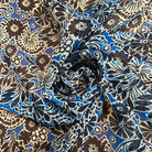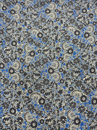 -Navy Blue & White Floral Print on Cobalt Blue Poly Georgette Fabric
