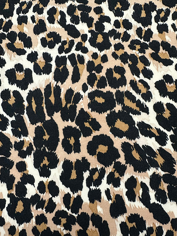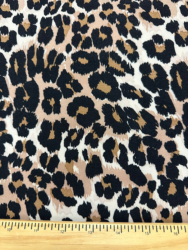 -Cream, Black, Brown, & Ivory Multi Animal Print Poly Georgette Fabric